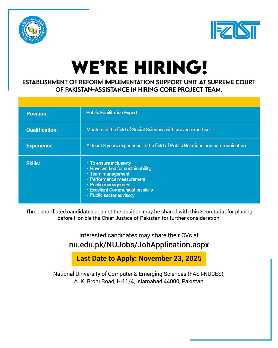 Job Positions for Reform Implementation Support Unit at Supreme Court of Pakistan