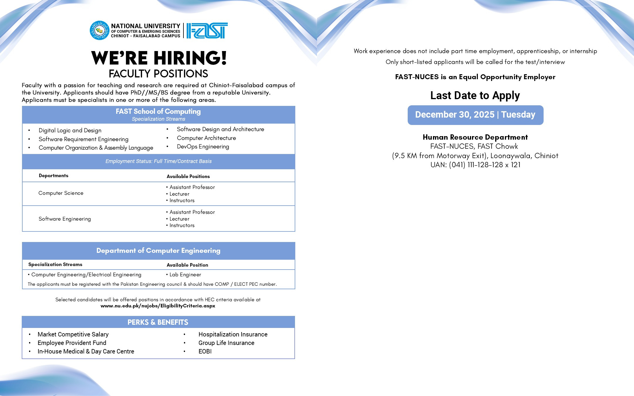 Faculty Positions in Chiniot-Faisalabad Campus